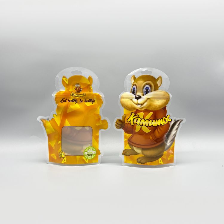 復合塑料小松鼠異形袋以其獨特的松鼠造型和多層復合材料結構